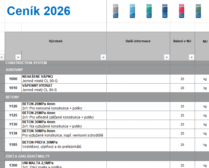 Ceník od 1. 3 .2026