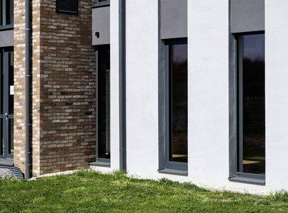 Na spojovacím atriu byla aplikovaná silikonová fasádní omítka 2727 ACTIVCEM, která odolává plísním, snižuje riziko vzniku trhlin a má samočisticí účinky. Co však činí fasádu obou budov atraktivní, je speciální obklad raženými cihlovými páskami HB.WDFP.Barok „83“ s rustikální strukturou. Vzhledem připomíná staré zdivo. Pro zajímavost – Cemix řešil také statický posudek týkající se kotvení ETICS s ohledem na lepení zmíněného keramického obkladu na fasádu. Jak se každý může přesvědčit, všechny materiály včetně zčásti viditelného betonu se k sobě očividně hodí a vytváří jeden harmonický celek.