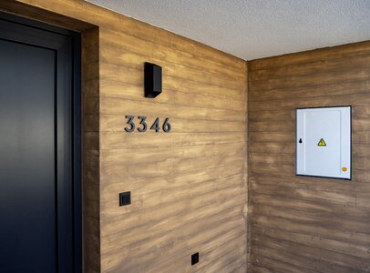 Na vybraných plochách byl použit kreativní povrch Artisan v dekoru dřeva. Výsledkem je realistická struktura prken při zachování celistvého, lehkého a difúzně otevřeného povrchu odolného vůči klimatickým vlivům.